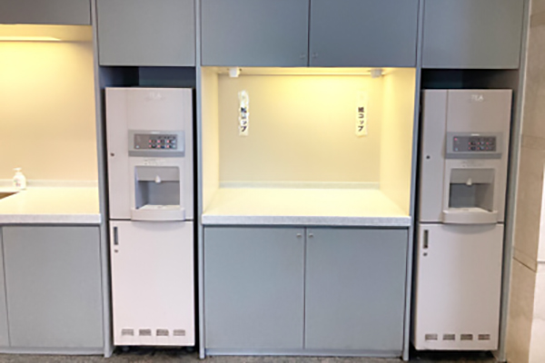 待合ロビー、喫煙コーナー、給茶サービスコーナー