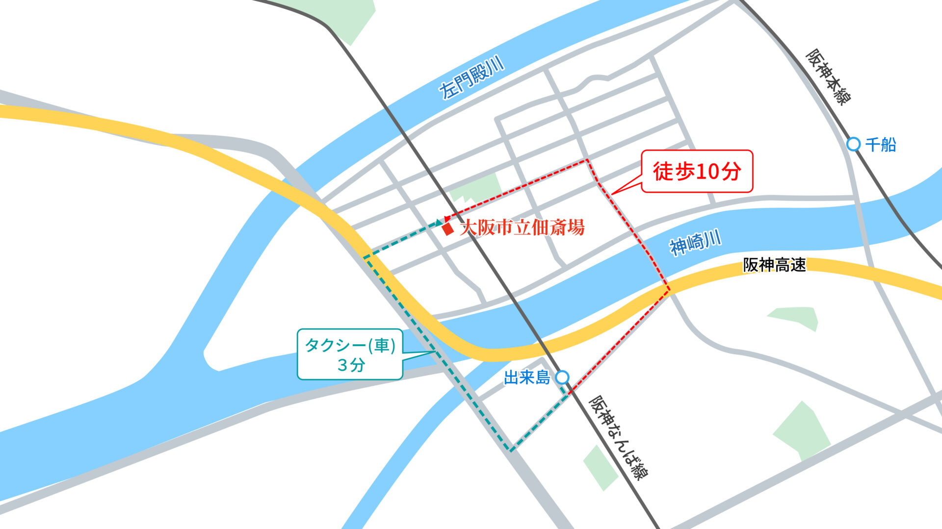 • 阪神本線/「千船」駅から西へ徒歩約15分